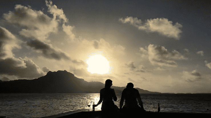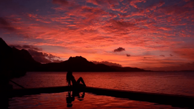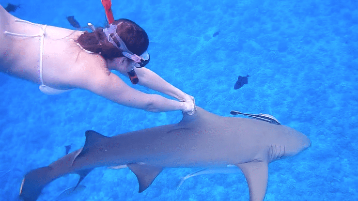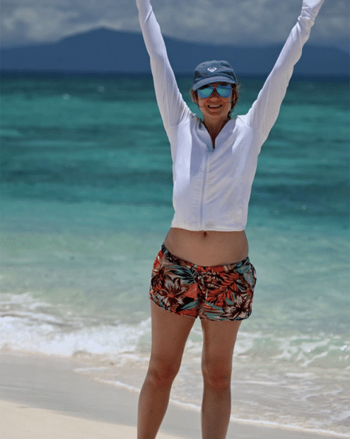 Excited on a sand bar atoll off the Great Barrier Reef in Australia